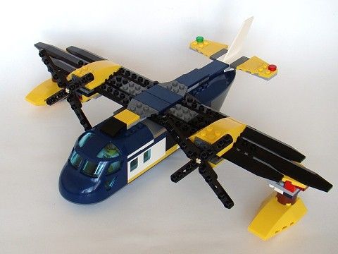 This hydroplane can easily land in swamps. It features two propeller engines on wings. You can spin them and put minifigure into cockpit. It is also supplemented with little hideout for sack of money. I've built this model for LEGO ReMake project.
